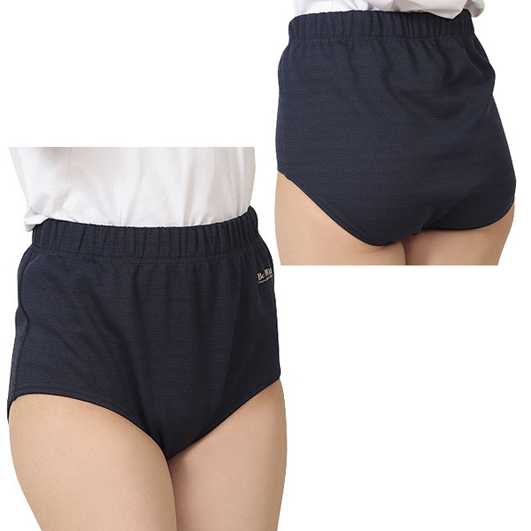 ウエストからお尻まですっぽり覆う本格的なハイカットブルマ(紺)。