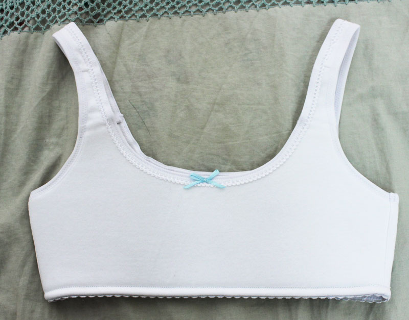 爽やかさ100%!フロントにちょこんと付いた水色リボンがキュートな純白のスポブラ単品(BIG)。