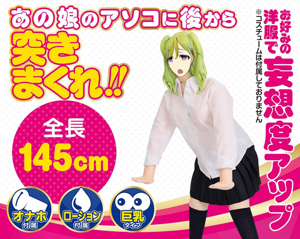 お気に入りのオナホを装着できるポケット付きで、コス衣装や下着などの着せ替えが楽しめる145cm等身大サイズ!貴男好みの理想の彼女に仕上げれば愛着度UP、妄想もどんどん捗る♪可愛いアニメキャラとの楽しいスクール性活を満喫しよう!オナホとローションが付属したお得なセット。