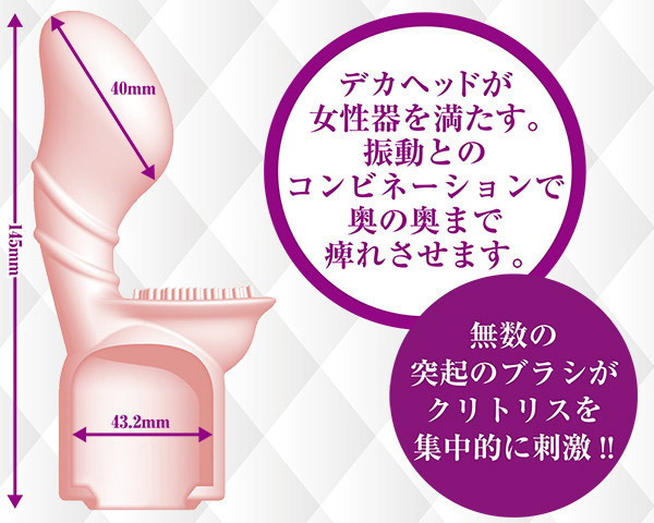 ●ミドルサイズ電マに装着可能●ホールド力高めなフィット感●ズレにくく快適プレイを補助●オルガスター型大きめヘッド●膣内をたっぷり満たして振動●ブラシ突起でクリトリス刺激。