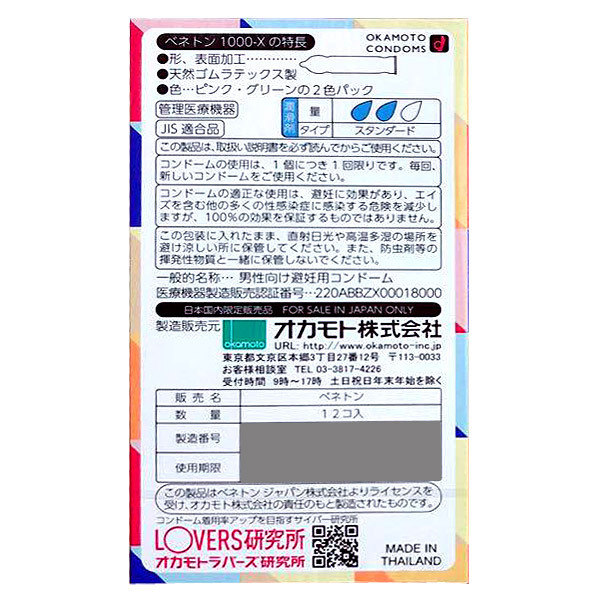 HOME > コンドーム > ブランド > オカモト ベネトン1000−X